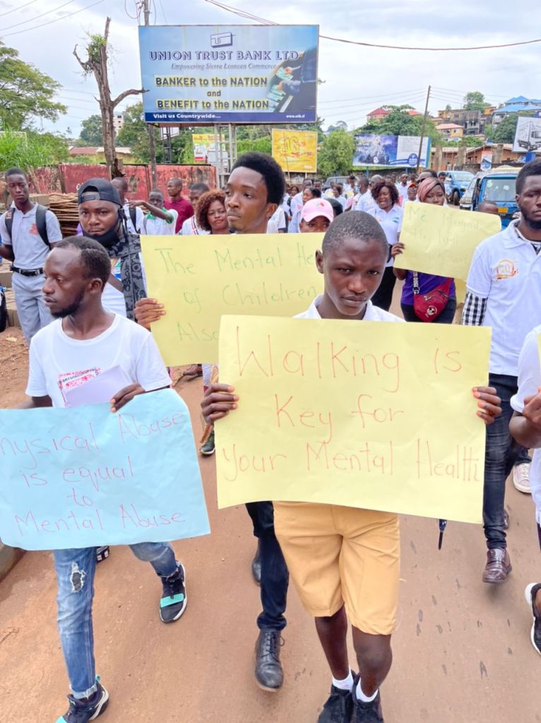 Walking is a great way to improve or maintain your overall health. Just 30 minutes every day can increase cardiovascular fitness, strengthen bones, reduce excess body fat, and boost muscle power and endurance. It is in that light the Mental Health Coalition-SL on its 10th Anniversary celebration and awareness raising drive in response to the rise in Mental Health related cases influenced by the Covid-19 pandemic, drug abuse and other environmental stressors; organized a sponsored walk with the theme “Care for the Mind Amidst Crisis Situations” The MH Coalition affirms the view that a good walk can do wonders for one’s mental well-being; this includes improving self perception and self esteem, reducing the risk of being depressed and helping those who are depressed stay active through a Detailed Self Care Plan; with exercise as one of the key components.