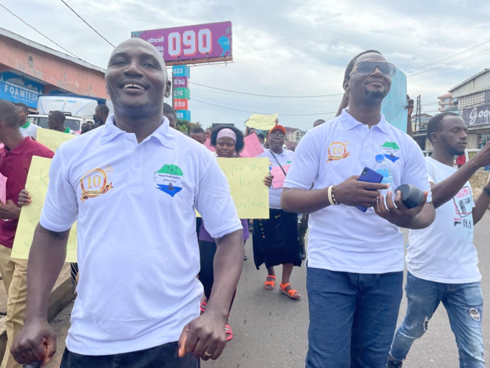 Walking is a great way to improve or maintain your overall health. Just 30 minutes every day can increase cardiovascular fitness, strengthen bones, reduce excess body fat, and boost muscle power and endurance. It is in that light the Mental Health Coalition-SL on its 10th Anniversary celebration and awareness raising drive in response to the rise in Mental Health related cases influenced by the Covid-19 pandemic, drug abuse and other environmental stressors; organized a sponsored walk with the theme “Care for the Mind Amidst Crisis Situations” The MH Coalition affirms the view that a good walk can do wonders for one’s mental well-being; this includes improving self perception and self esteem, reducing the risk of being depressed and helping those who are depressed stay active through a Detailed Self Care Plan; with exercise as one of the key components.